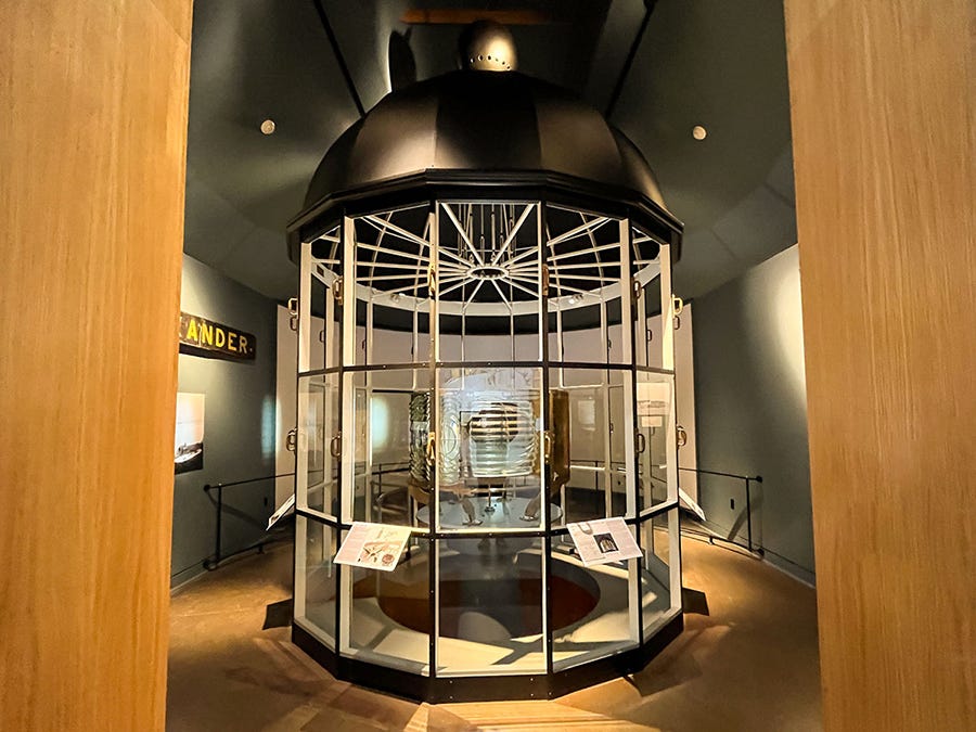 A couple of weeks ago, I had the opportunity to make another visit to the Maine Maritime Museum in Bath to admire their “Into the Lantern” exhibit, which features the gorgeous second order Fresnel lens from the Cape Elizabeth Light (east tower). After the visit, I wrote the following: