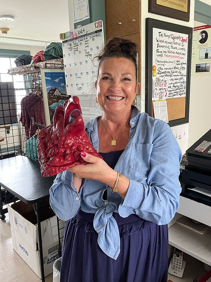 When Kimberly Ashby learned of this, she joyfully accepted the generous donation. Kimberly has long wanted to create an exhibit on this distinctive feature of West Quoddy Head Lighthouse. Now, she would not have to utilize imagery and text only, but would have an actual gargoyle to incorporate into a future display!
