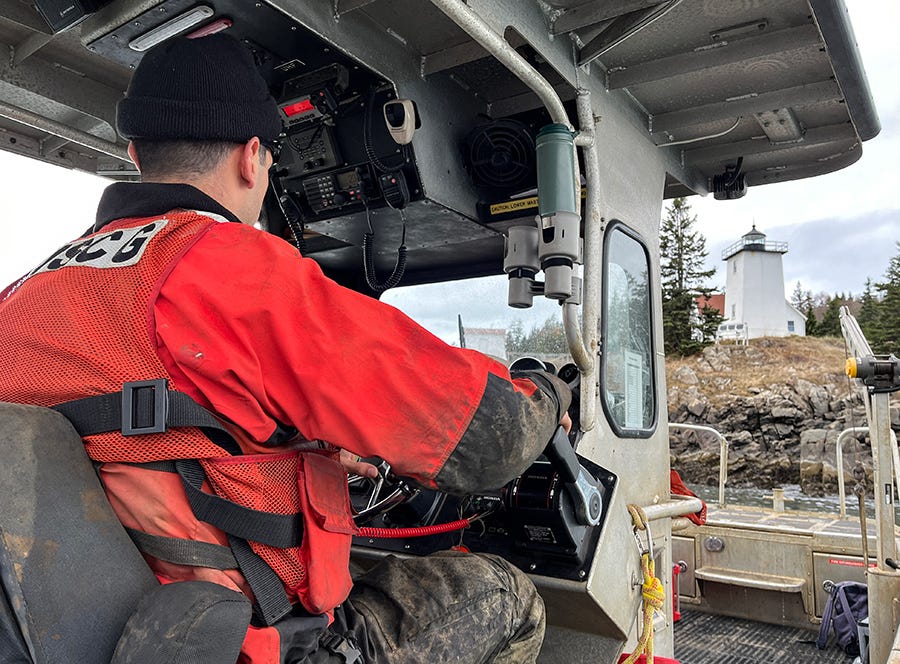 However, in the moment, such thoughts and feelings needed to be shelved – for there was a job at-hand. Troubleshooting efforts revealed a tired battery was the cause of the beacon’s discrepancy. With ample power restored, the beacon was rejuvenated and Burnt Coat Harbor Lighthouse was left watching properly.